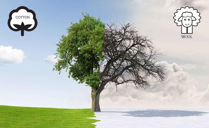 Die Baumwolloberfläche sorgt für kühle Sommernächte, während die Wolloberfläche Ihnen hilft, warme Winternächte zu verbringen. Ihr Bett bietet Ihnen während des Schlafens einen individuellen thermalen Komfort.