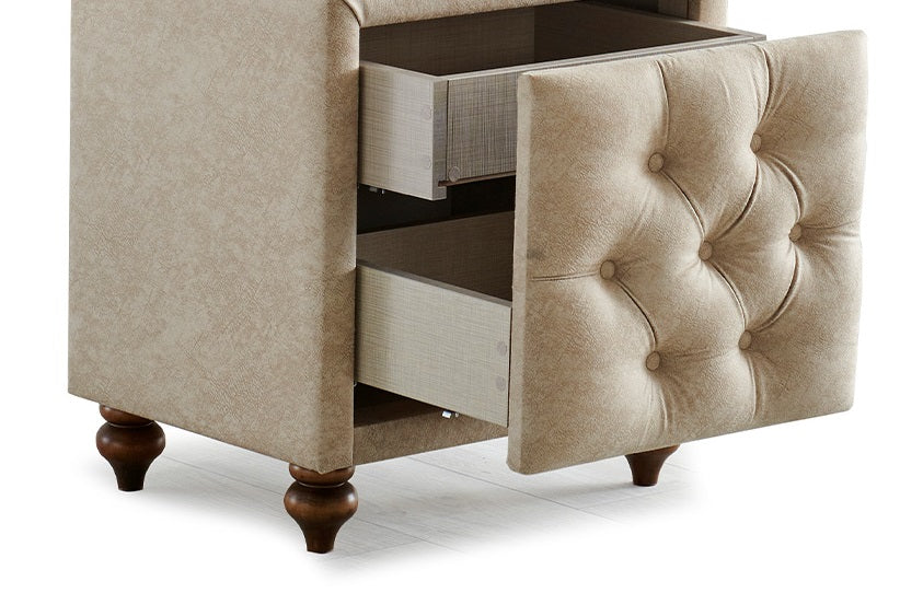 Diese Nachtkommode ist genau richtig für alle, die viel Stauraum brauchen. Mit zwei Schubladen bietet sie viel Platz für alle Ihre persönlichen Gegenstände wie Fernbedienung, Handy, Bücher, Schmuck usw. Durch ihren praktischen Aufbewahrungsschrank wird der Raum aufgeräumter und Sie haben Ihre täglichen Gebrauchsgegenstände immer in Reichweite.