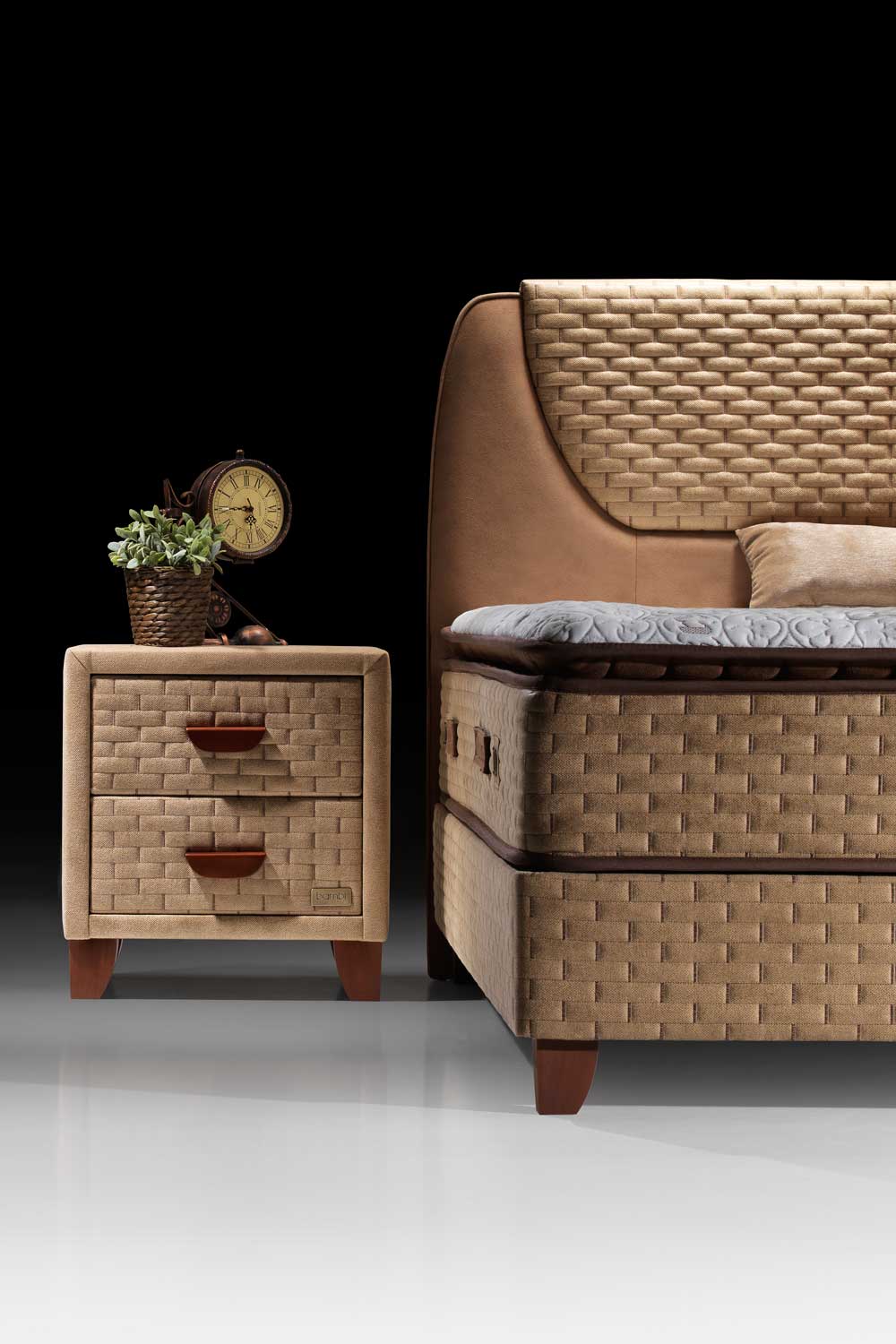 Bambi Yatak Luxia Nachttisch für Boxspringbetten, Nachtkommode, Nachtschrank mit 2 Schubladen für Schlafzimmer, Wohnzimmer, 53 x 57 x 41 cm