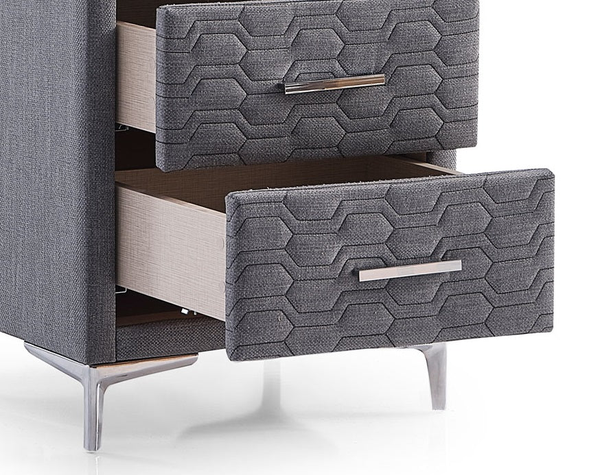 Diese elegante Nachtkommode ist die perfekte Ergänzung für Ihr Boxspringbett. Mit ihrem Stoffbezug und den 2 Schubladen verleiht sie Ihrem Schlafzimmer ein modernes und stilvolles Aussehen. Die Maße der Kommode betragen 41x53x57 cm, was sie ideal für Betten jeder Größe macht.