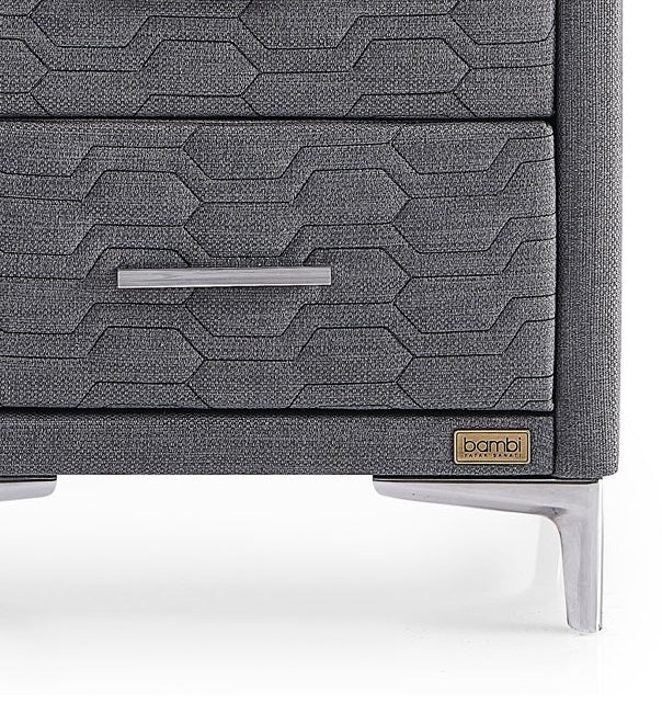Bambi Yatak Visco Fresh Nachttisch für Boxspringbetten, Nachtkommode, Nachtschrank mit 2 Schubladen für Schlafzimmer, Wohnzimmer, 53 x 57 x 41 cm