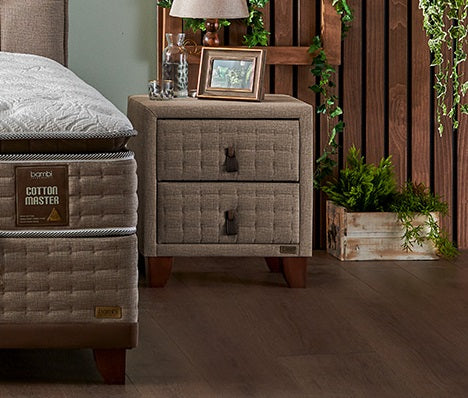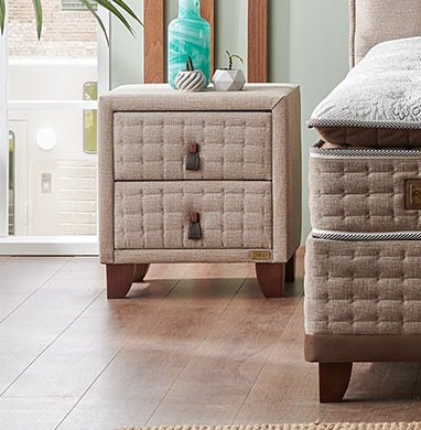 Bambi Yatak Cotton Master Nachttisch für Boxspringbetten, Nachtkommode, Nachtschrank mit 2 Schubladen für Schlafzimmer, Wohnzimmer, 53 x 57 x 41 cm